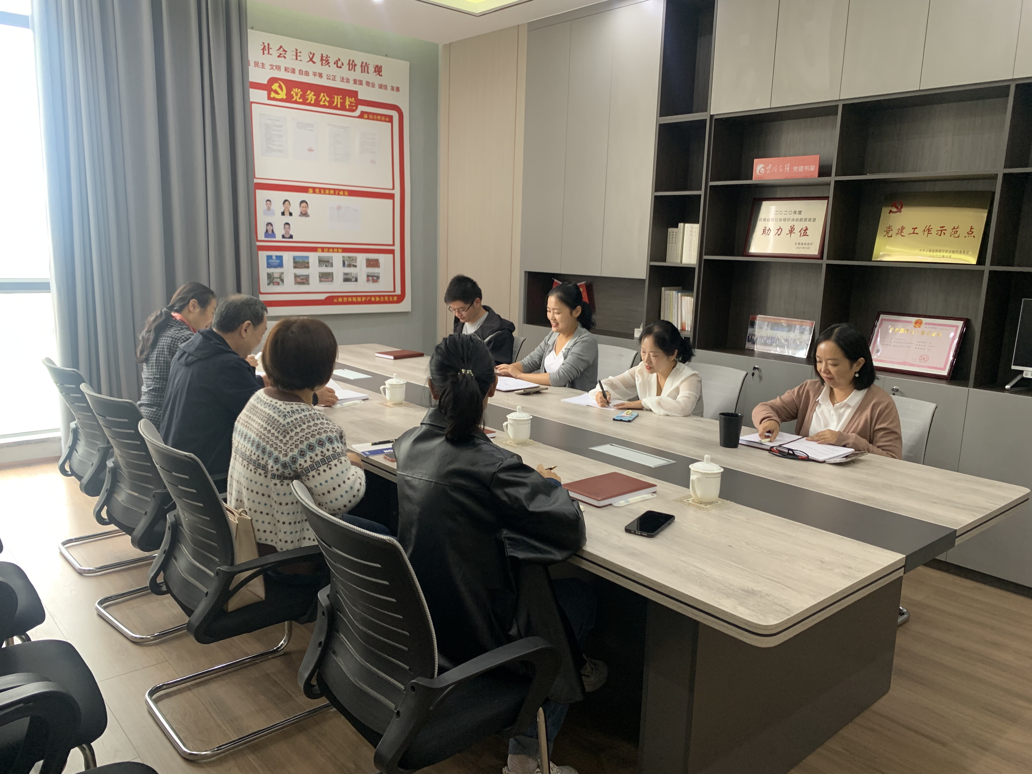 云南省生態(tài)環(huán)境宣傳教育中心主任、黨支部書記任澤林、厲云科長、董秋蘋、趙志清,云南省環(huán)境環(huán)境保護產(chǎn)業(yè)協(xié)會會長張齊、秘書長陳霞、副秘書長尹俊梅、綜合部楊展雄、會員部閆怡鑫參加了此次座談會。