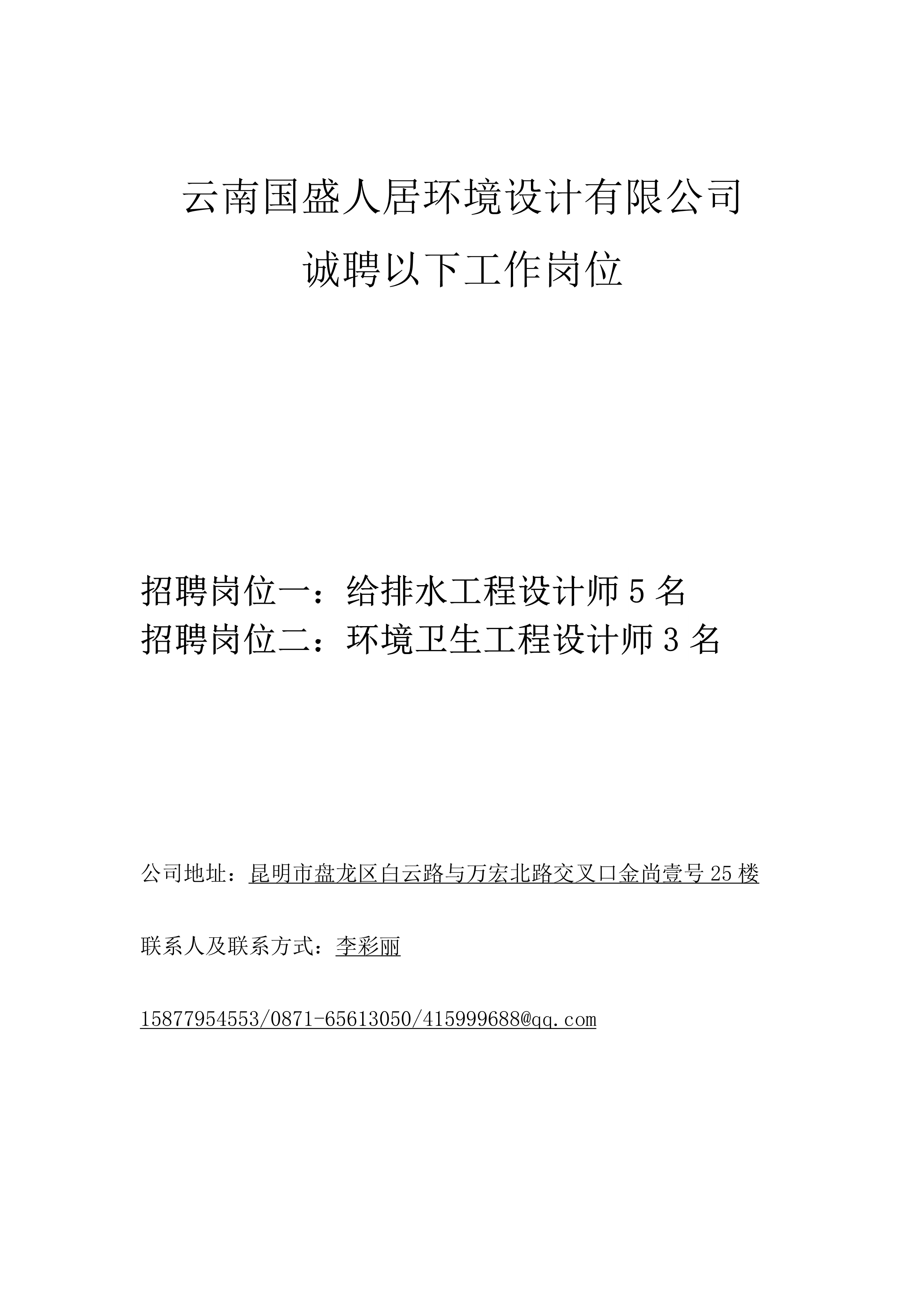 云南國盛人居環(huán)境設(shè)計(jì)有限公司招聘簡介