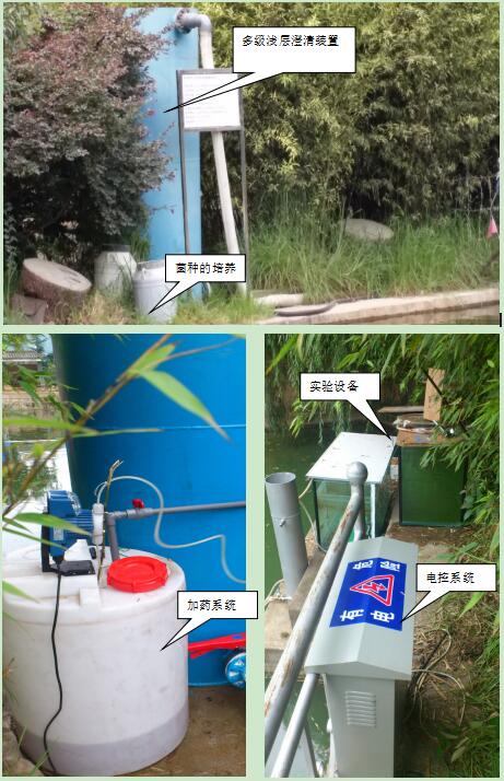 項目采用有效微生物菌技術(shù)結(jié)合循環(huán)凈水工藝對小型湖泊、池塘、水庫等污染匯富營養(yǎng)化水體進(jìn)行原位、異位結(jié)合修復(fù),首次提出了富營養(yǎng)化水體藻菌共生概念,快速建立水體生態(tài)自凈平衡系統(tǒng),實(shí)現(xiàn)對水體富營養(yǎng)化的根本治理。通過對天然沸石超微改性后,配合常用凈水劑復(fù)合制得物理型助凝劑(JYX-助凝劑),吸附、脫色、助凝等功能優(yōu)異,可有效吸附水中氮磷。研制出漂移式多功能凈水設(shè)備,集凈化除藻、投菌、充氧、噴泉景觀等功能于一體,具有節(jié)能、降濁、除藻效率高、投資少等優(yōu)點(diǎn)。利用該工藝處理后的水質(zhì)符合地面水環(huán)境質(zhì)量標(biāo)準(zhǔn)中的Ⅲ類水質(zhì)標(biāo)準(zhǔn)。